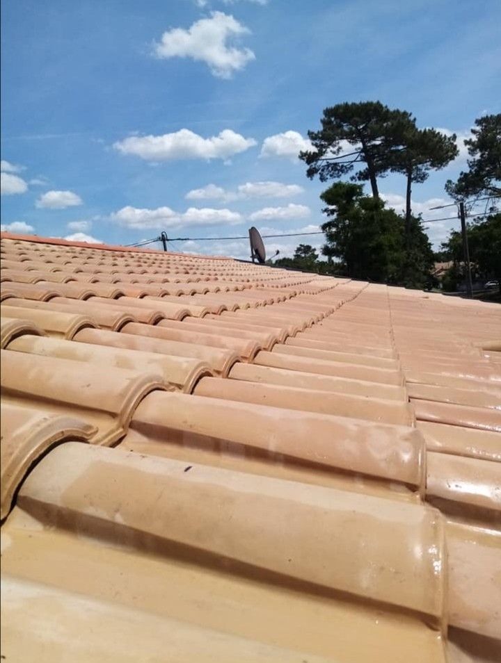 - Traitement Anti-Mousse : Après le nettoyage, nous appliquons un traitement anti-mousse pour prévenir la croissance future de mousses, d'algues et de lichens sur votre toit. Ce traitement prolonge la durée de vie de votre toiture et réduit la fréquence des nettoyages nécessaires.
